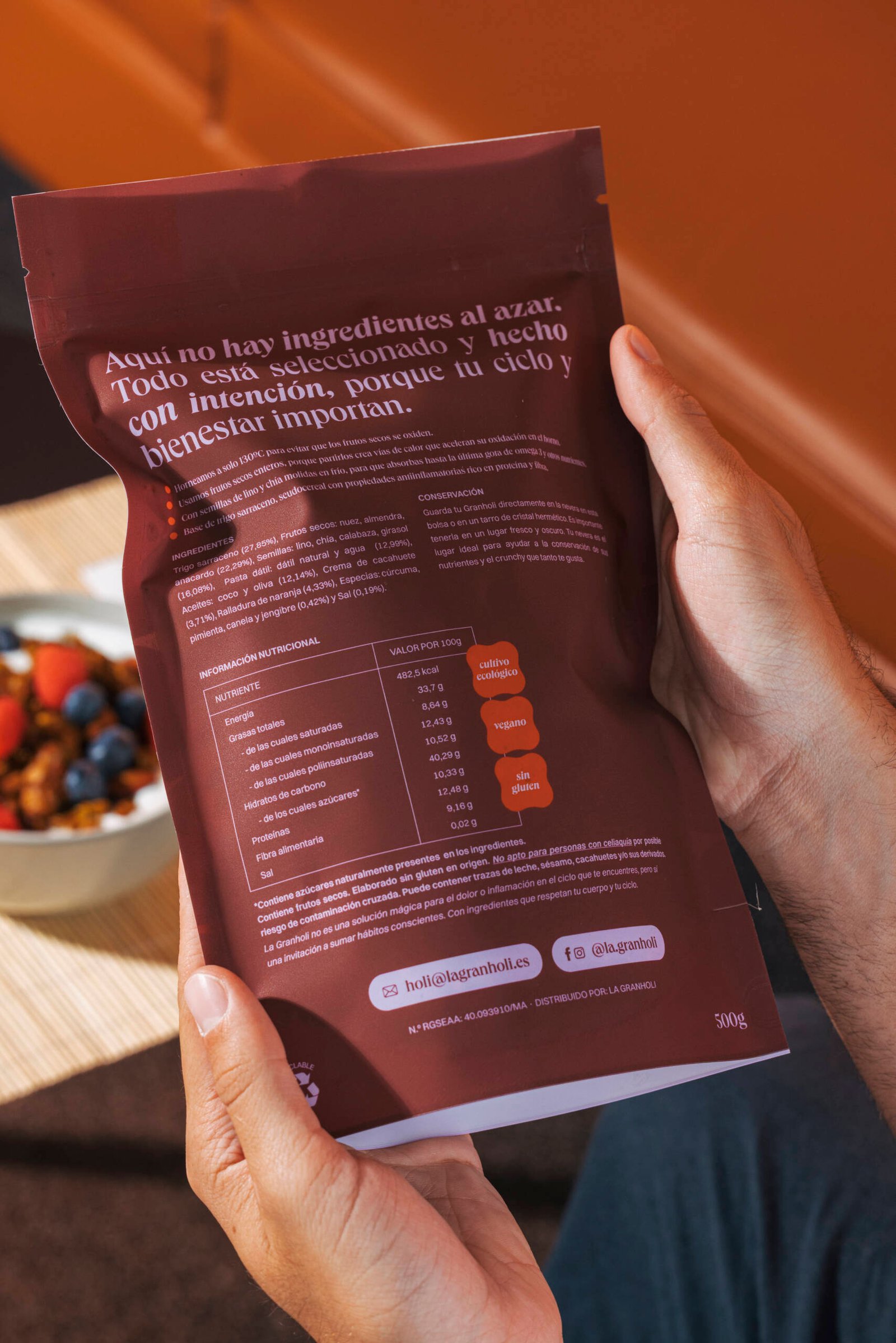 - Horneado bajo demanda: Horneamos en pequeños lotes cada 3 días. Si al hacer tu pedido no hay stock inmediato, tu Granholi se preparará en la siguiente hornada.